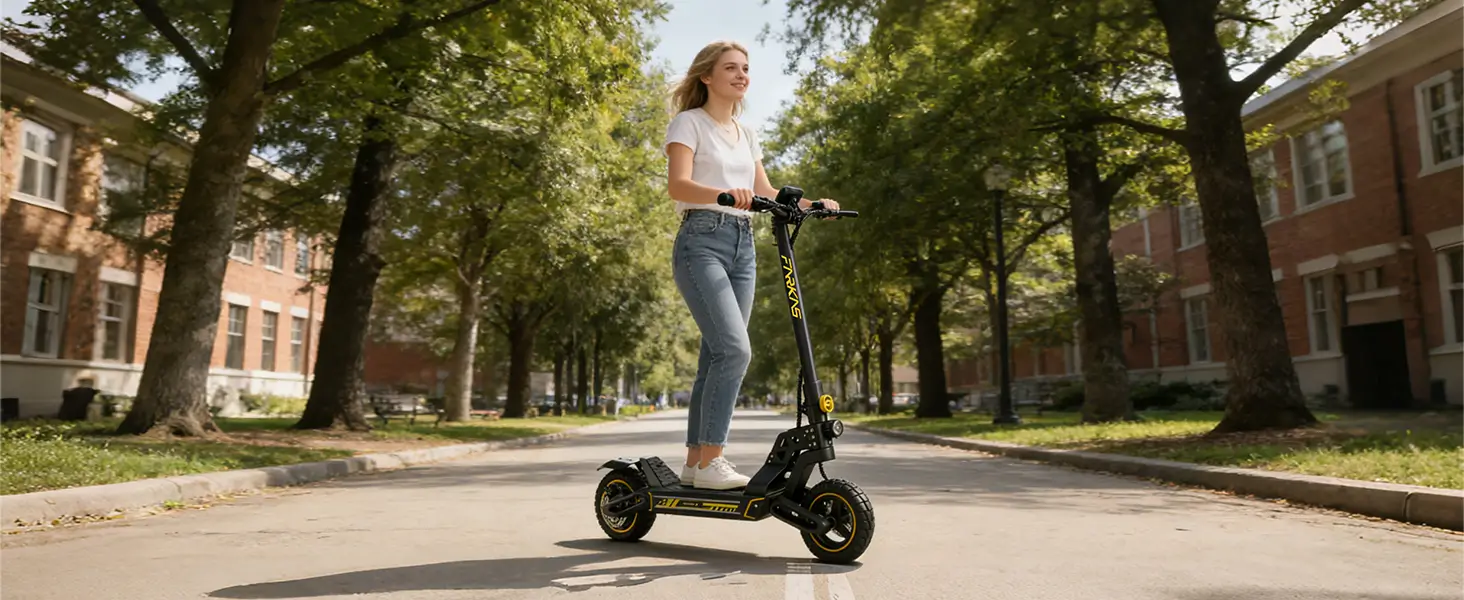 Our electric scooters feature IP54-rated water resistance, allowing safe use in light rain and humid conditions. However, prolonged exposure to heavy rain or submersion in water is not recommended.