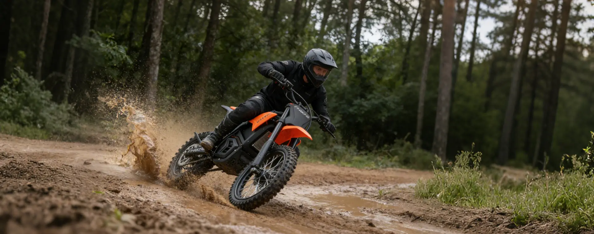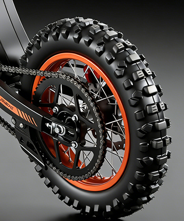 70/100-17" + 90/100-14" tire setup delivers strong grip and stability across dirt, sand, and uneven surfaces for a confident ride.